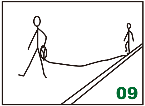 ジョイントテープを、継ぎ合わせる人工芝の下に、継ぎ合わせる片方の人工芝の端が粘着テープの中央に置きます。