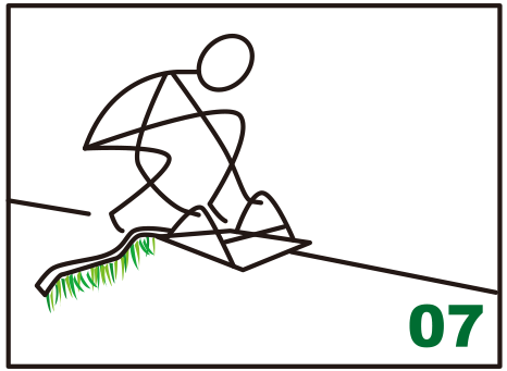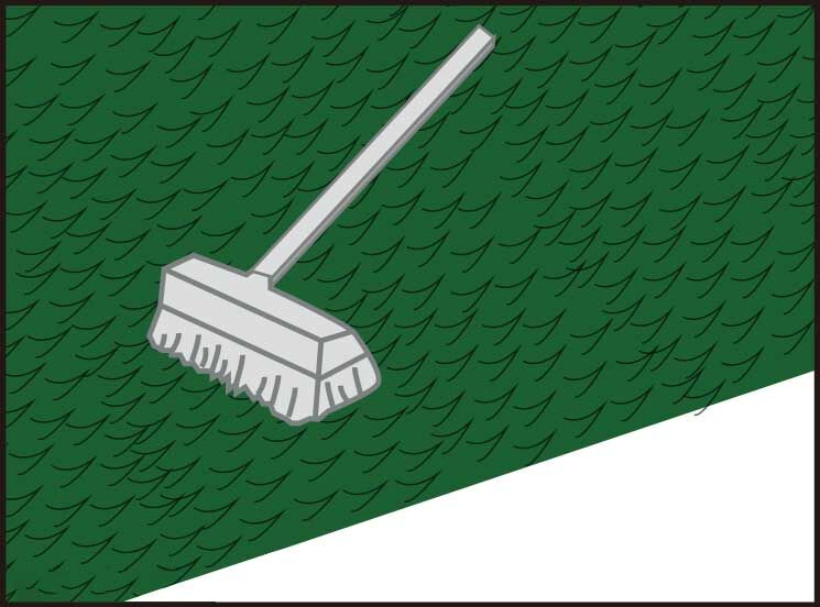 継ぎ合わせできた後、芝葉が立てるように、人工芝全体をブラシでゆっくり整理します。