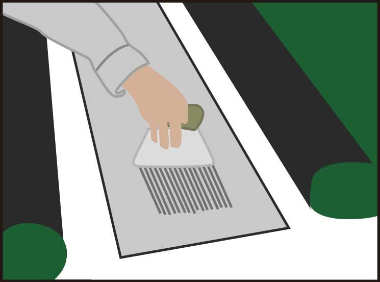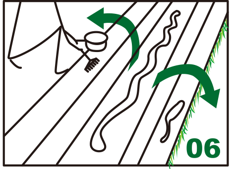 土砂、ホコリなどを除去します。突起物、穴あき等をチェックし補修します。