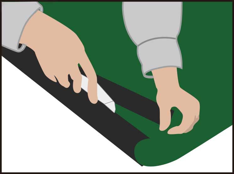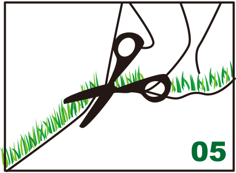 人工芝を仮敷きしてきから、余分な人工芝をカットし、施工場所にぴったり納めていきます