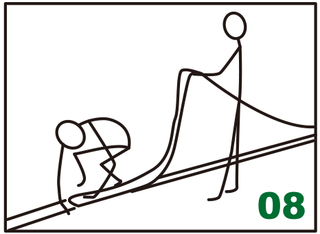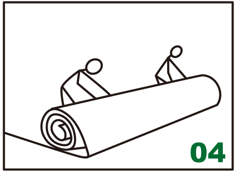 ジョイント部には特に隙間が出来ないように、耳部を突き合わせながらパイルを巻き込まないように丁寧に貼り込んでください。
